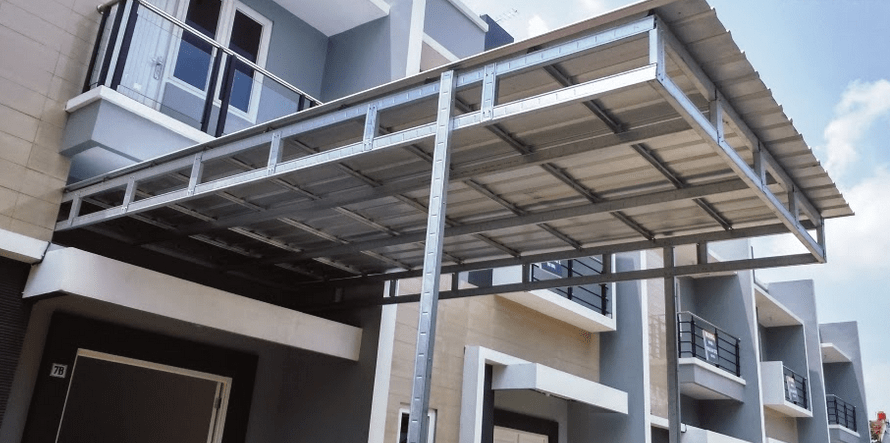 Jika dibandingkan dengan jenis kanopi lainnya, baja ringan tergolong lebih awet dan tahan lama. baja ringan terkenal tahan terhadap karat, rayap ataupun akibat perubahan cuaca dan kelembapan. Anda bisa berhemat, karena jangka penggunaan baja ringan relatif lama serta sangat cocok diaplikasikan di bangunan yang berlokasi di daerah lembap ataupun daerah dengan curah hujan tinggi. Berikut ini kami akan memberikan contoh gambar desain kanopi baja ringan yang bisa anda jadikan sebagai inspirasi kanopi untuk rumah anda.